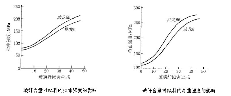 有數(shù)據(jù)證明,通過玻纖加強(qiáng)以后,PA6的機(jī)械性能、剛性、尺寸穩(wěn)定性、耐熱性就明顯提高。